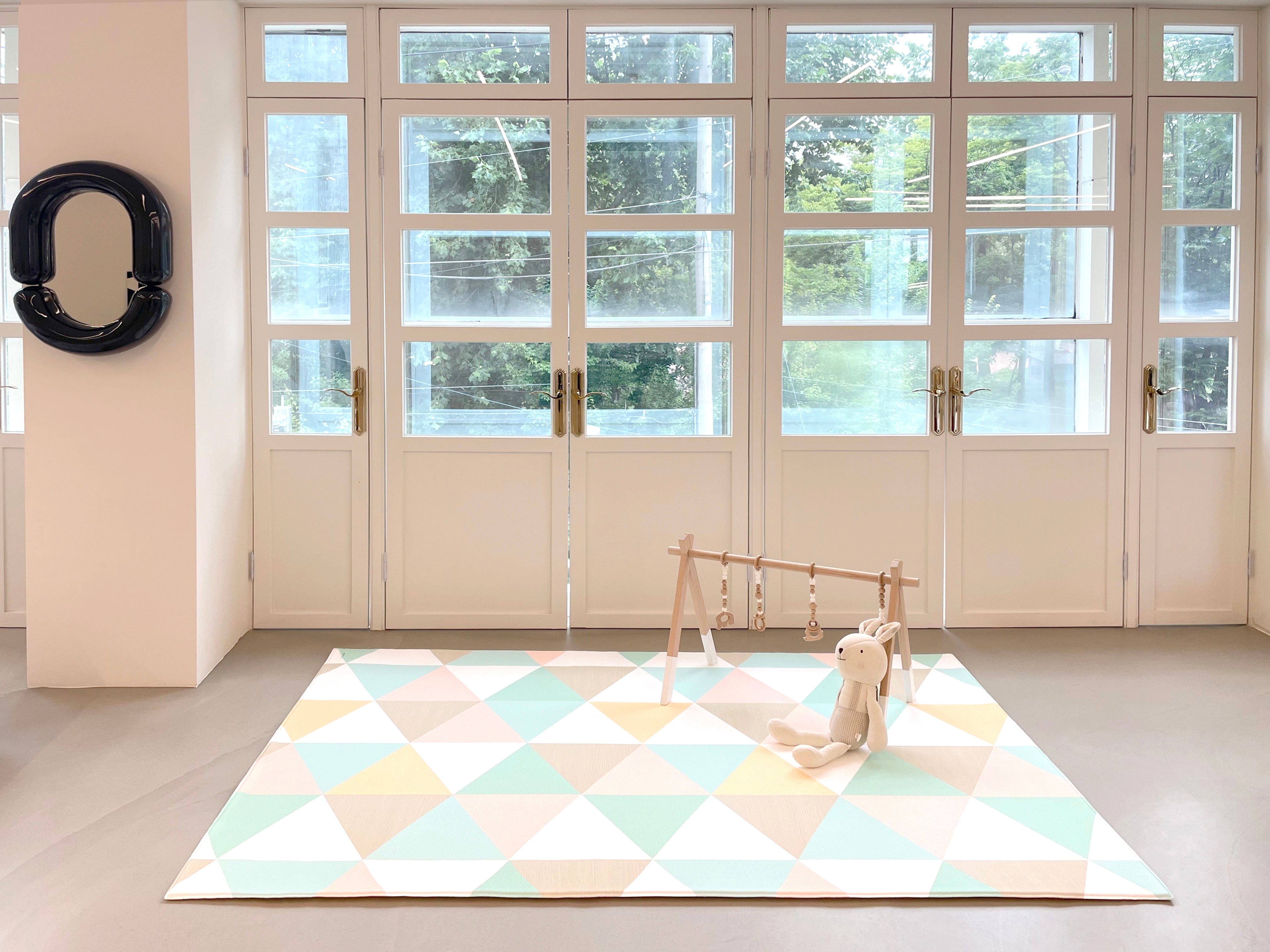 Transform any floor into a safe, stimulating space for babies with this ultra-cushy playmat that absorbs the impact of falls and tumbles as they discover the world around them. Larger than conventional mats, it provides little ones and family members plenty of room to bond and grow. Each mat is reversible, with educational, stimulating illustrations for a baby on one side and an interior design aesthetic on the other. An extra-durable, one-piece design makes it easy to clean, roll away, and enjoy for years to come.