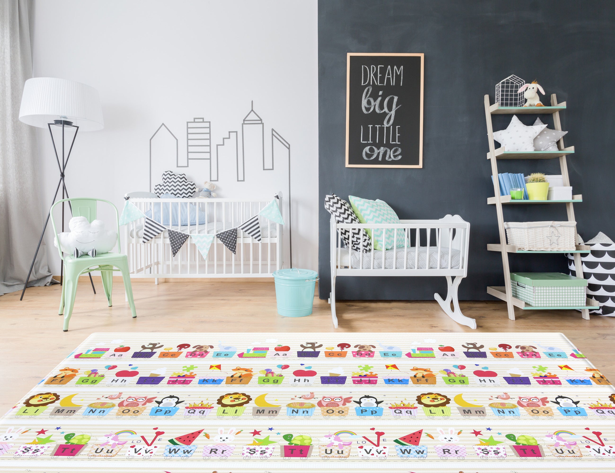 Transform any floor into a safe, stimulating space for baby with this ultra-cushy playmat that absorbs the impact of falls and tumbles as they discover the world around them. Larger than conventional mats, it provides little ones and family members plenty of room to bond and grow. Each mat is reversible, with educational, stimulating illustrations for baby on one side and an interior design aesthetic on the other. An extra-durable, one-piece design makes it easy to clean, roll away, and enjoy for years to come.